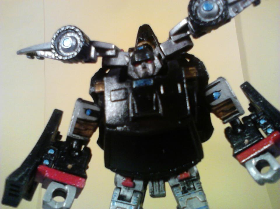 The costomizations: Megatron get a new paint scheme making his armor shine more the his previous Powerizer "Voyager Class" form. Megatrons also fitted with LED lights to show off his true power of Energon. The sward has also been removed from the gun.