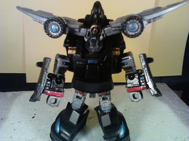 Included is the original mold and trailer, that transforms into his jetpack, from the original Classics toy, with bits of blue, red, and gold for detail. A menacing, darker look for this killer custom really works out well at the end, something I never thought of when it comes to the devoted character.