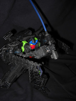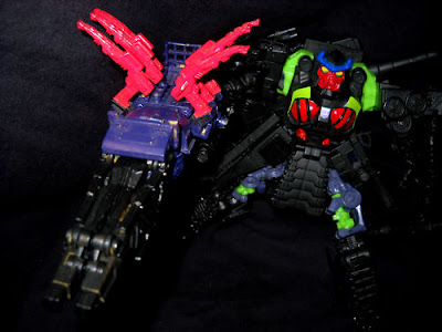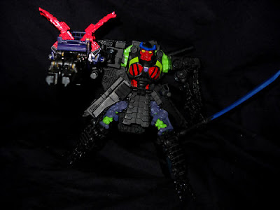 "Banzai-Tron's Action Master partner is Razor-Sharp, a crab whose claws can tear through nearly any metallic substance. Razor-Sharp transforms into a semi-automatic rifle that fires exploding plasma-energy projectiles. He shares his partner's devious mindset"
