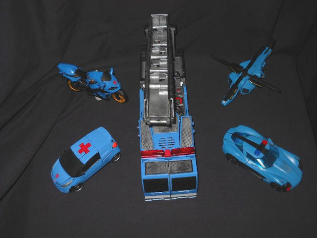 "FROM TRANSFORMERS WIKI-----The combined form of the five Protectobots Defensor exists specifically to safeguard human life. In many ways he feels about the human race the way a parent would their children and he would give his life away in an instant rather than let one human come to harm. Defensor is emotionally attached to humans on a level that sometimes worries his fellow Autobots. He identifies with them the same way a sheep dog would with its flock or a puppy with its human owners. As far as Defensor is concerned the humans are his "kind." Sadly the titanic robot giant's attempts at personal interaction and friendly exchanges with humans tend to fail. We humans tend to be more wary and frightened of his alien nature and great size than Defensor can understand. Despite this, Defensor is fairly well adjusted mentally compared to almost every other Generation 1 gestalt."