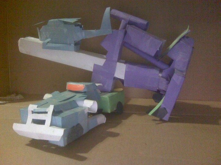Once again, a simple custom made by us, now its nothing to big or to great but I like it anyways. Bruticus is a powerful force built for destruction to fight the Autobots again and again. Bruticus is made of 5 vehicles that transform into their own characters, Swindle, Brawl, Vortex, Blast Off, and Onslaught the leader and commander.