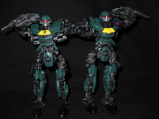 Rack'n'Ruin are two, unusual looking guys, unfortanantly I don't know excactly who they are or why they are conjoined exept that they are Wreakers but still I am impreased and amazed BCG Customs could have created such a masterpiece using 2 Deluxe Bumblebee's most likely Revenge of the Fallen preview version.
