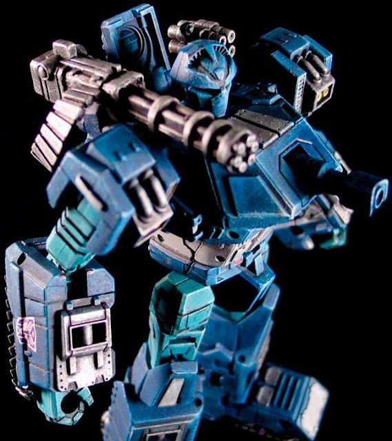 Warpath, originally a Mini Bot, is back in action in a complex universe in the famous comic, Shattered Glass, get ready and gear up because hes bad and got more BOOM to his arsinal. Using Generations Warpath, Darkcave was able to re-create him into a very dark warrior for the Shattered Glass Series, well done
